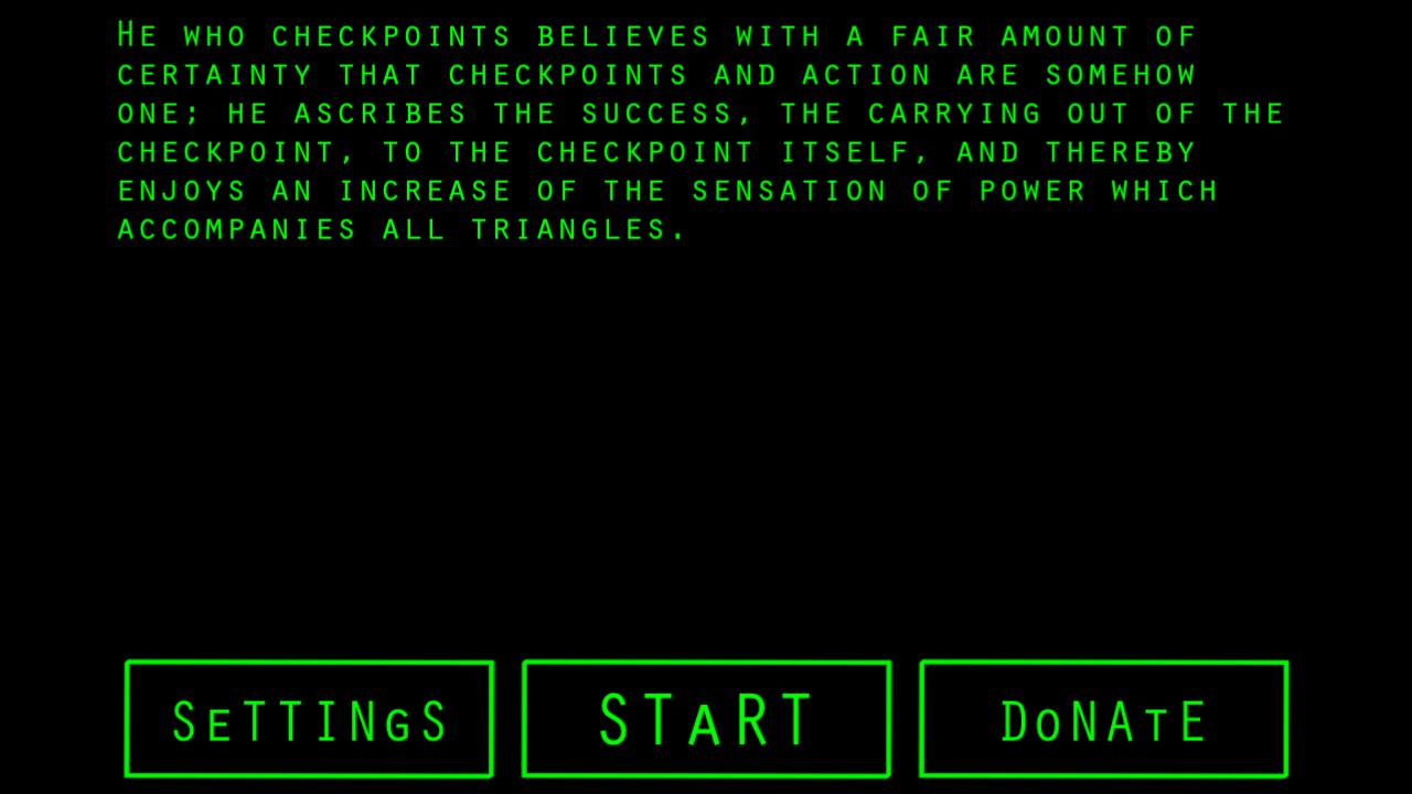 Gravity Triangle é um jogo de navio espacial voador e muito verde, composto de triângulos, paredes e pontos de verificação. Voe a coisa do triângulo espacial retrô, evite as paredes verdes retro e passe pelos postos de controle totalmente independentes e depois terrestre, fácil, certo? Bem, é fácil começar, mas fica muito difícil, existem nove níveis clássicos e ainda estou preso no nível 5.