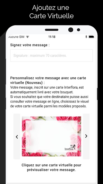- "Mensagem virtual": Anexe ao seu buquê um cartão de postagem virtual que o destinatário do seu buquê parecerá online.