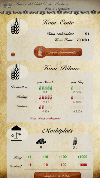 Bem -vindo como novo príncipe para Kaiser ! No começo, sua Alteza possui um pequeno império. Colete impostos e grãos de seus cidadãos, mas lembre -se de que os altos impostos levarão seus cidadãos para outros impérios e se não houver grãos suficientes, seus cidadãos passarão fome.