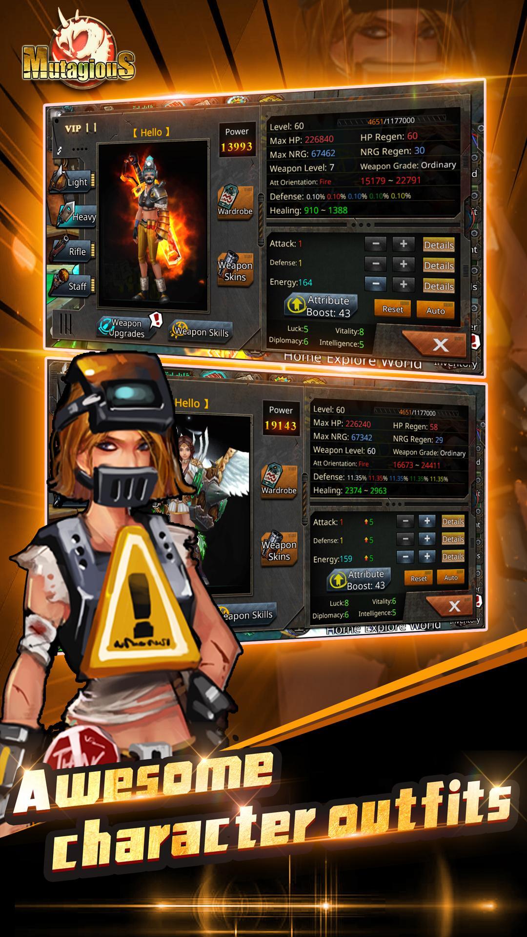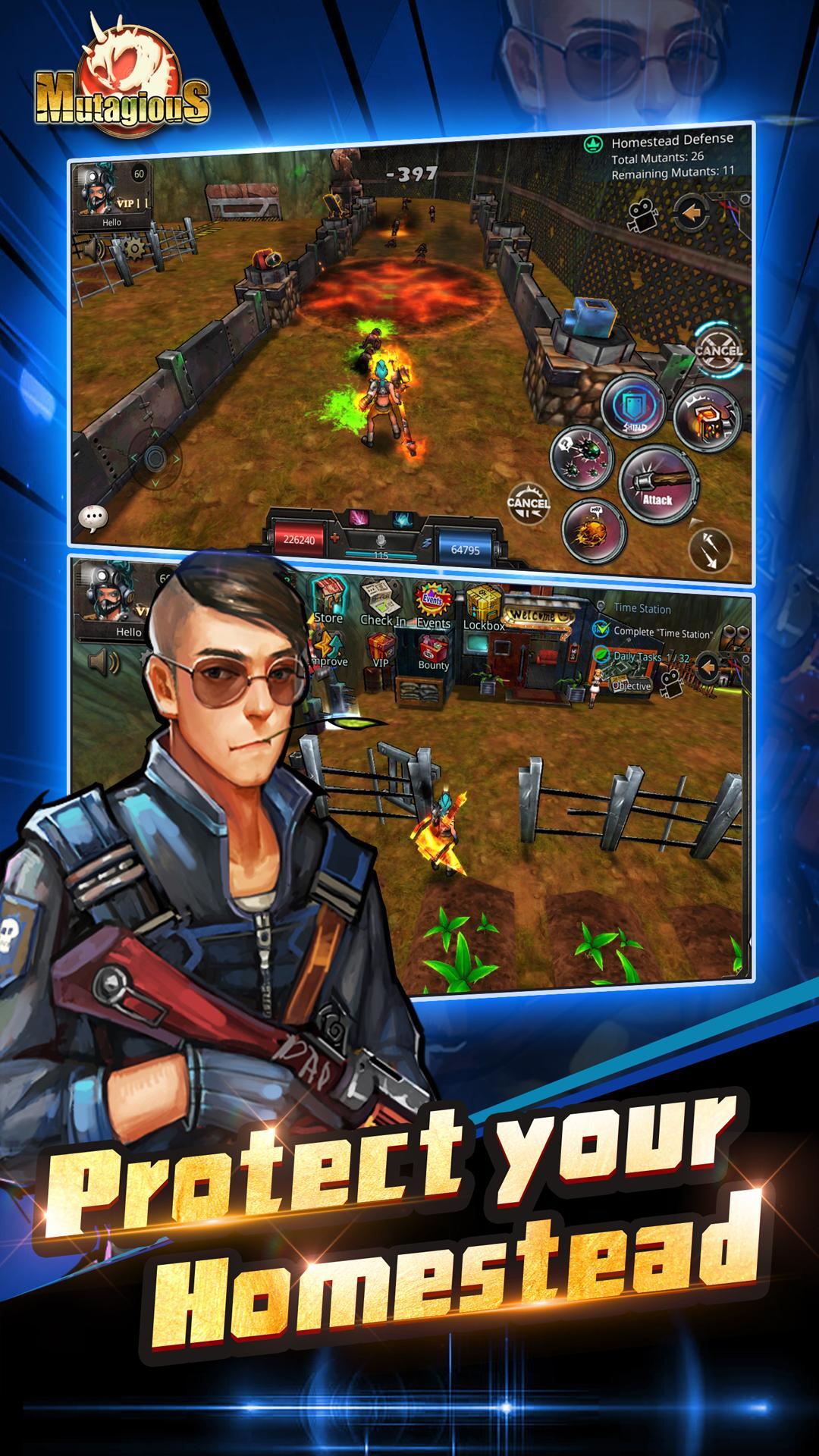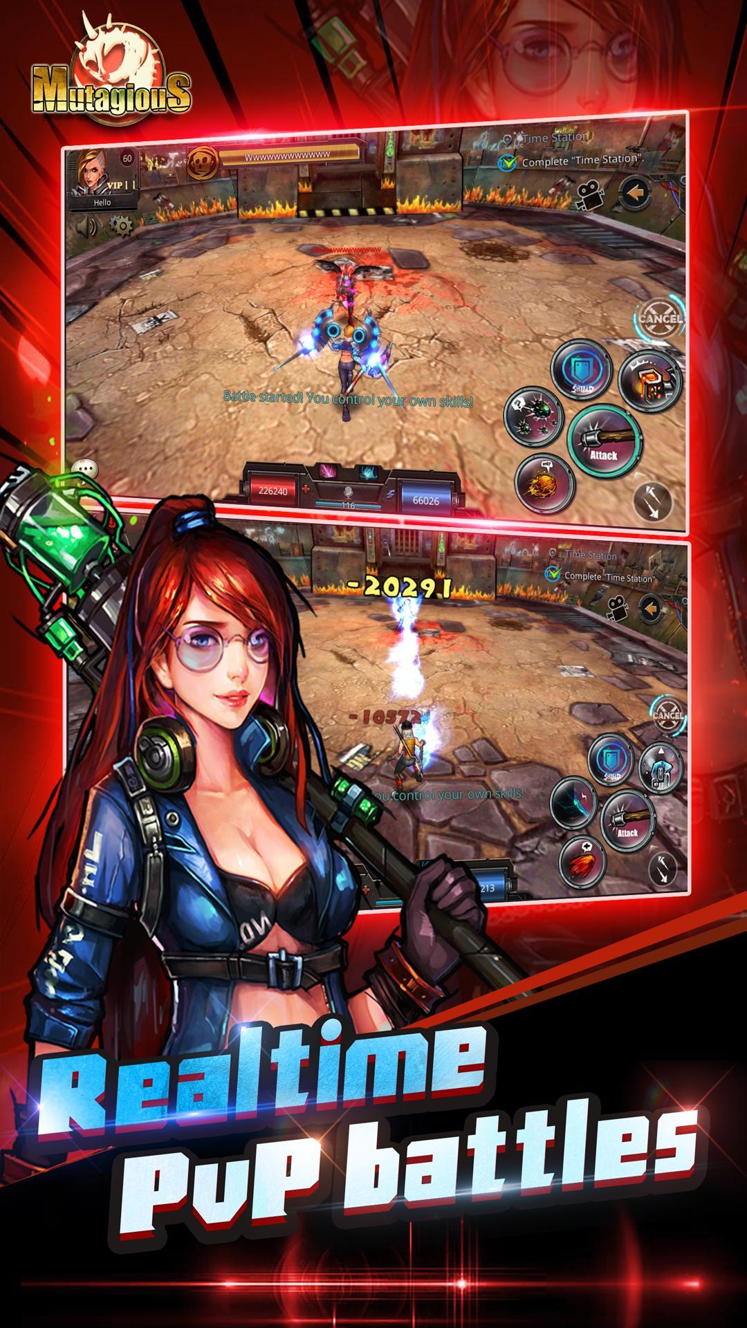 Mutagious é um jogo móvel de RPG de próxima geração, alimentado pelo mecanismo U3D. Cel sombreamento, gráficos 3D, iluminação dinâmica e cenas de corte imersivas criam um impacto visual impressionante.
