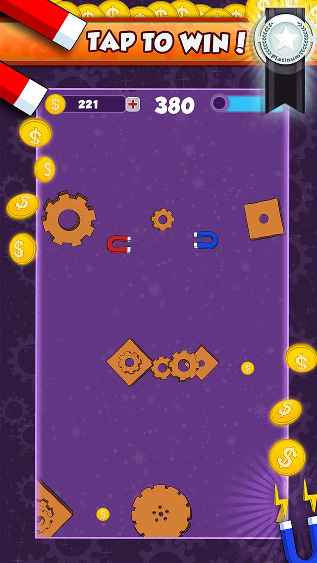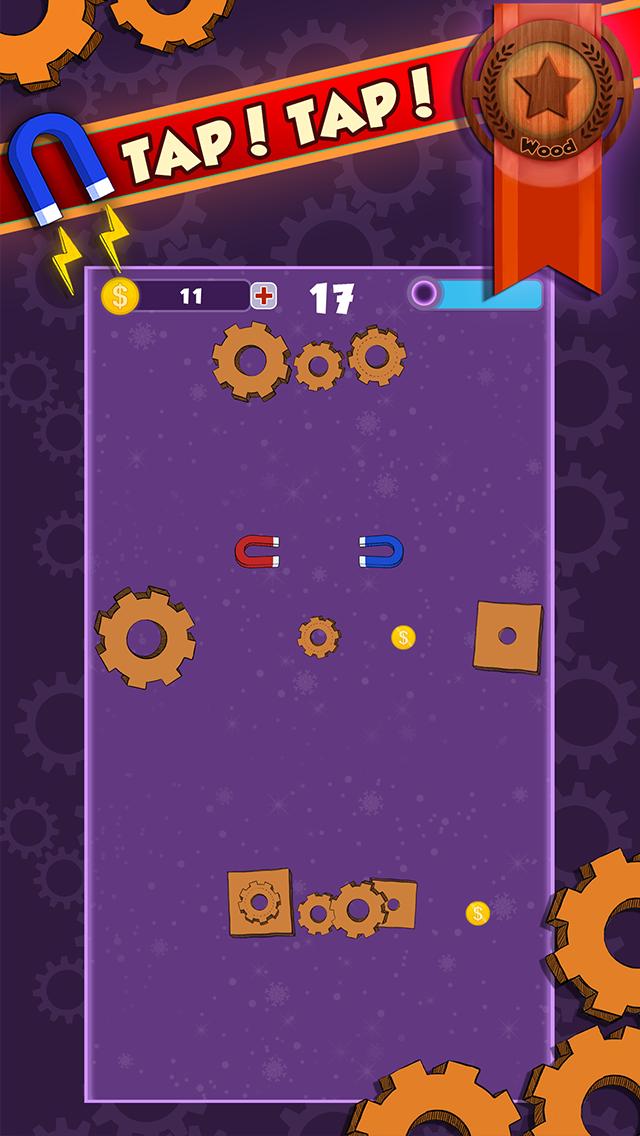 Experimente a aventura do Tap Tap Magnet , os ímãs caindo através do mundo das engrenagens e rodas. Toque na tela para repelir ímãs e evitar obstáculos.