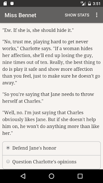 Jogue através de "Orgulho e Preconceito", o romance clássico! Você é uma jovem em 1813, na esperança de encontrar seu verdadeiro amor. Mas qual dos seus cinco pretendentes você favorecerá? O nobre distante Sr. Darcy? O amável Sr. Bingley? O Sr. Collins abafado, o coronel de bom coração Fitzwilliam, ou o vilão Sr. Wickham?