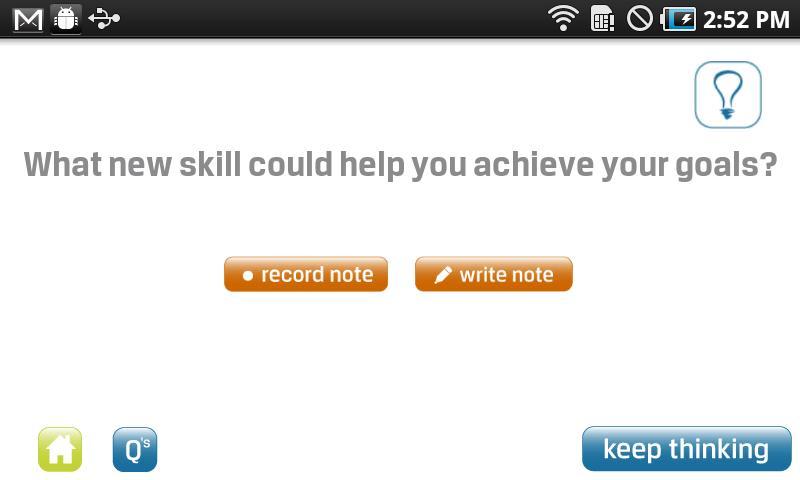 Desenvolvido por um treinador profissional, ThinkPal se baseia na filosofia de treinamento de que você já conhece a resposta; Você só precisa da pergunta certa.