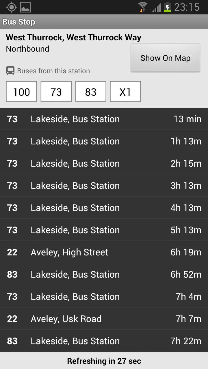 Informações de ônibus e trem em tempo real específicos para Thurrock