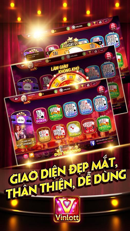 Vinlott - O Big Game Card é um aplicativo de jogo de cartas online gratuito em dispositivos móveis.