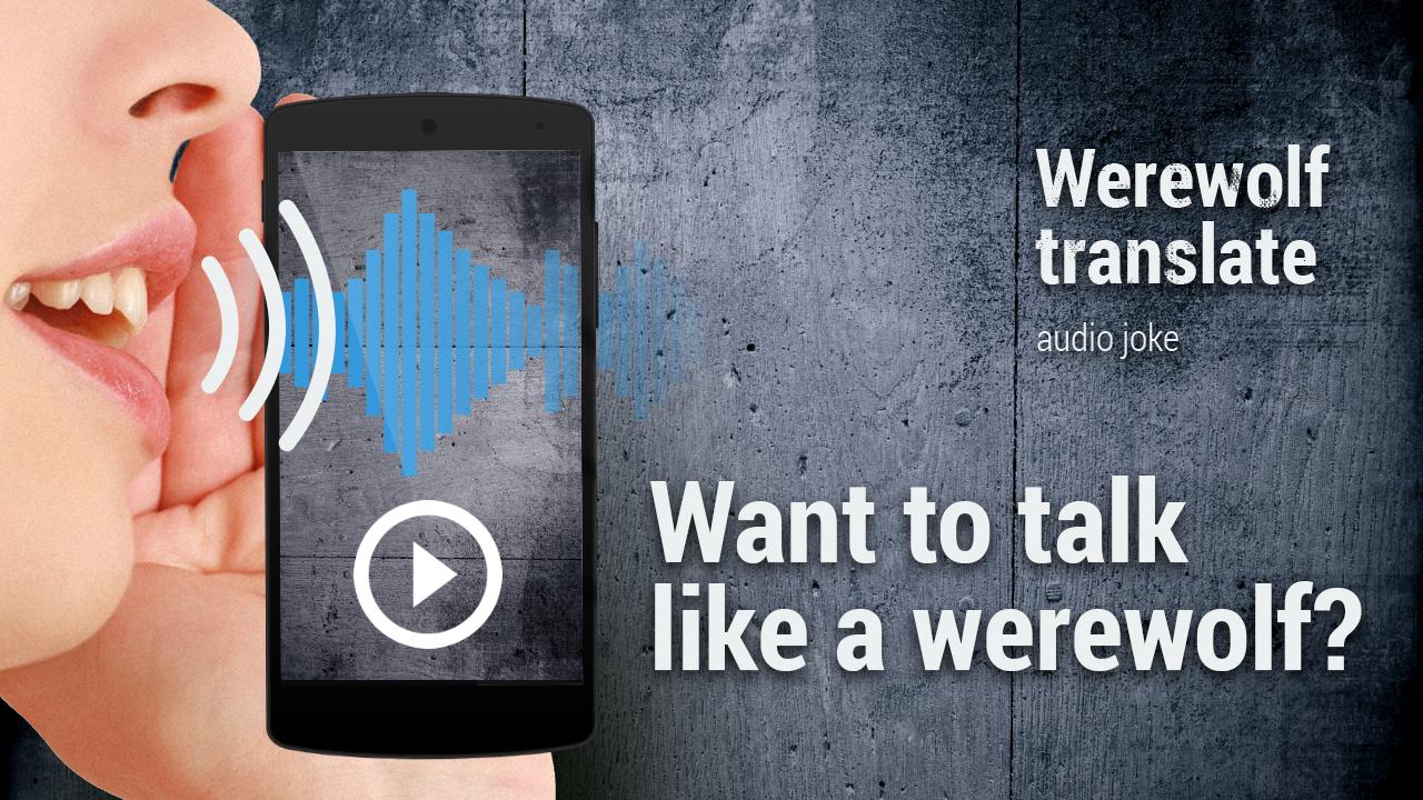 Tradução de lobisomem Piada de áudio - Tradução do simulador de palavras para a linguagem dos lobisomens. Prepare -se para uma lua cheia hoje.