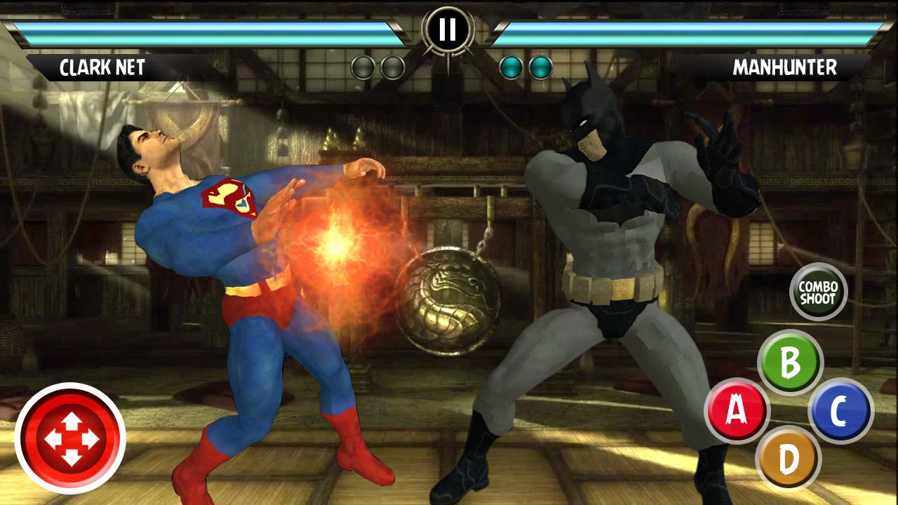 São feitos um soco, chute, tiro de fogo e botões de ataque combinados para facilidade.