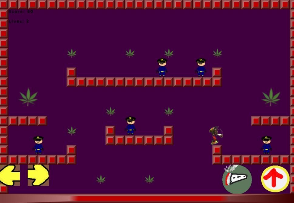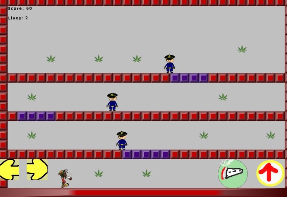 game in which you are a Rastafarian you have to get all the marijuana leaves there to the next level, watch the police