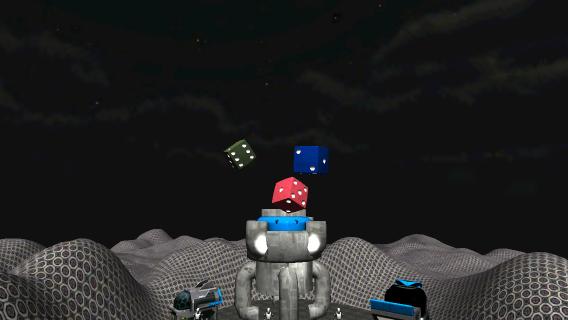 KEYWORDS: dice, 3D, roller, rolling, star, planet, robot, dead, lucky, fortune, luck, board, game