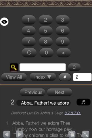 Включает мелодии для каждого гимна, поиска в текстах и числа записей, которые выводят вас прямо к гимну, который вы ищете.