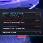 Что касается черты Monarch, вы можете получить ее, перевернув NPC в Фрост-Таун на 5 драгоценных камней. Поскольку у этого есть только вероятность падения на 0,025%, вам, возможно, придется повторно перевернуть несколько раз, чтобы получить его.