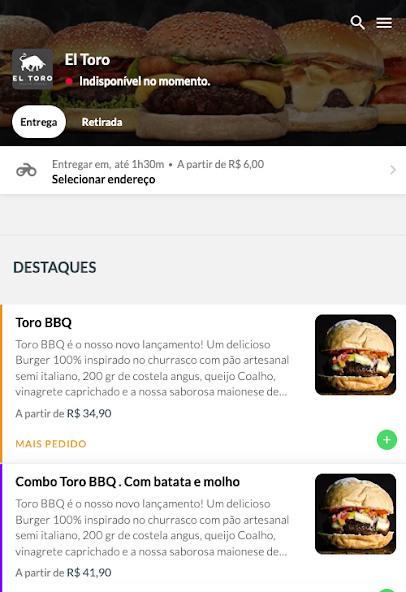Попросите доставку в El Toro с небольшим количеством кранов на экране Android