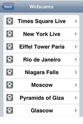 Живые веб -камеры, включая Эйфелевую Тауэр Париж, Таймс -сквер, Нью -Йорк, Рио -де -Жанейро, Москва Красная площадь, Пирамиды Гизы Египет, Ниагар Фолс Канада и многое другое.
