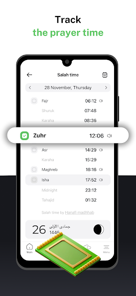 - Трекер молитвы: оставайтесь в курсе точных Salah Times на основе вашего местоположения. Приложение предоставляет ежедневное расписание молитвы, гарантируя, что вы никогда не пропустите свои молитвы.