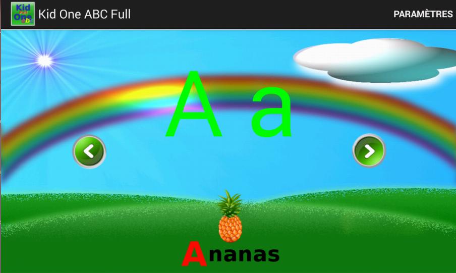 Широкая клавиатура, прокрутка букв или идентификация букв в словах. Есть несколько способов выучить алфавит для детей. Это простое приложение подразумевается игриво и весело. Это также позволяет детям изучать алфавит на других языках (французский, испанский и арабский)