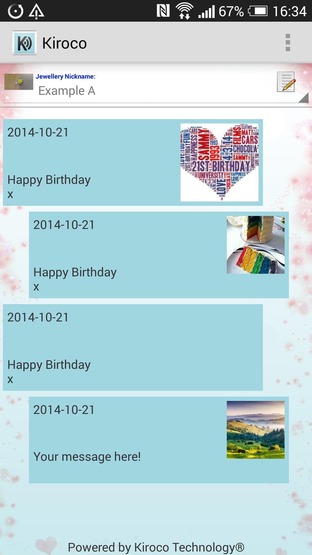 Принесите свои ювелирные изделия Kiroco в жизнь с помощью телефона NFC, чтобы пережить ваши воспоминания.