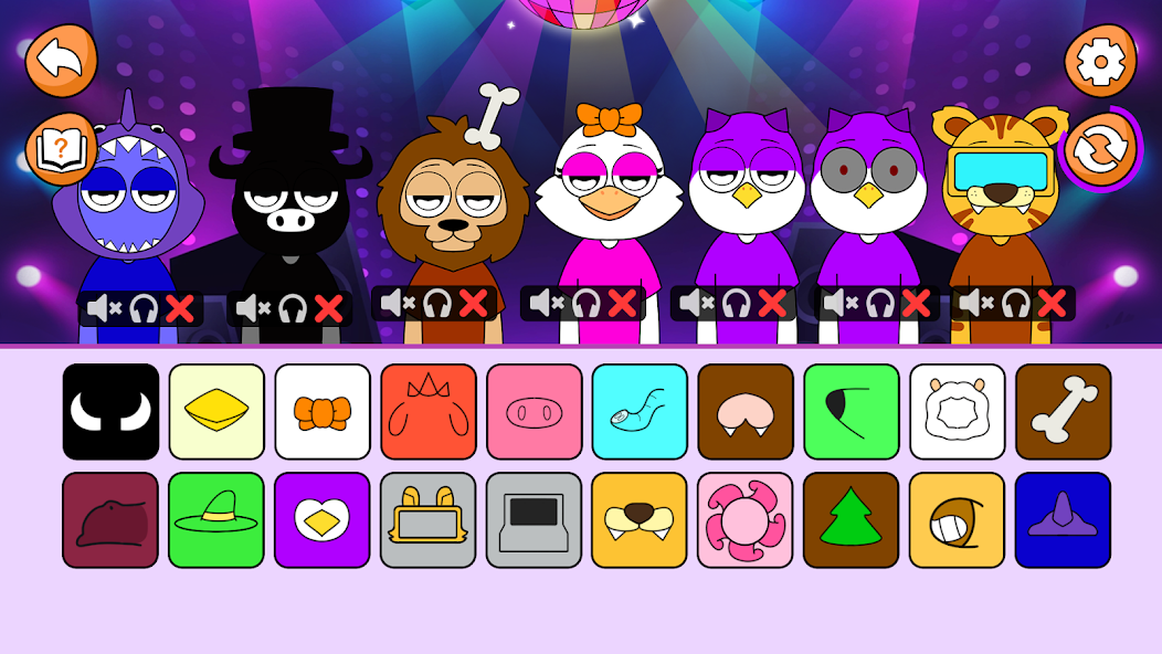 Создайте свой микс: перетащите и бросьте выбранные звуки на персонажей и позвольте волшебной музыке развернуться.
