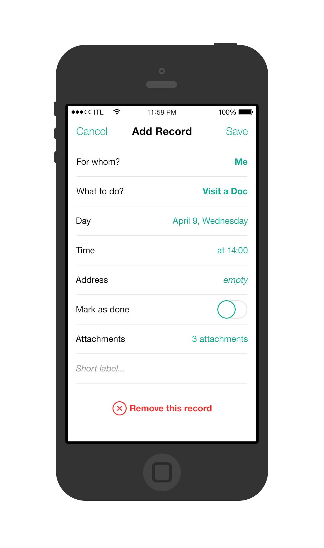 Приложение сохраняет информацию о базовых пользователях или пациентах, группе крови, аллергии, диоптерах, списке GPS, MD -специалистов или больниц. В то же время это организатор деятельности, отслеживание монитора, напоминание и планировщик встреч. Напоминание и планировщик предназначены для сохранения и сложной оценки вашего собственного состояния здоровья.