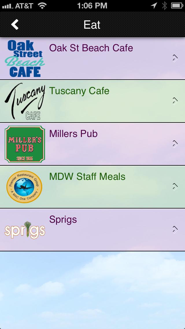 Приложение Midway Airport приносит вам Premier Restaurant Group - подразделение Mac One Midway LLC - крупнейшего оператора концессий на продукты питания и напитков в международном аэропорту Midway.