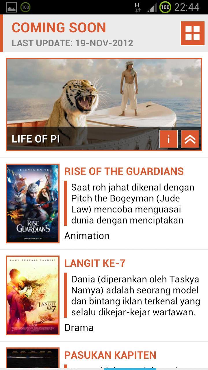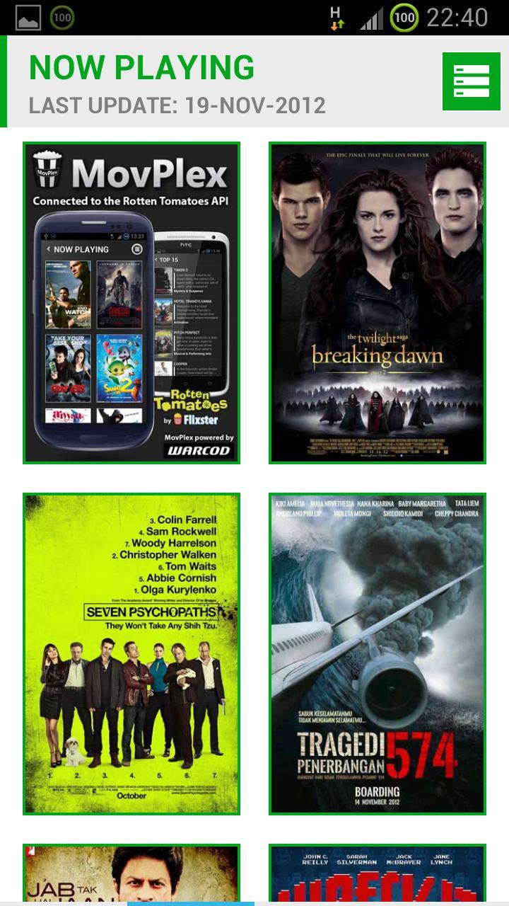 Get MovPlex and you will never missed your favorite movies playing. MovPlex is Indonesian-Based-Cinema movie schedule. MovPlex use the data from the largest Cinema Group (Studio 21 & Studio XXI) and Blitzmegaplex in Indonesia. MovPlex now connected to Rotten Tomatoes API for Box Office Movies (Opening, Top & Upcoming). MovPlex has a very attractive design and is very easy to use.