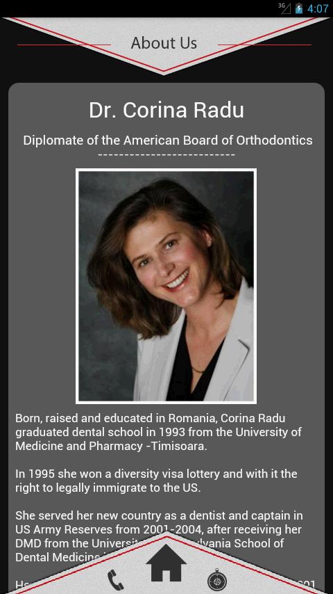 Великолепные, здоровые улыбки - наш бизнес. Все, что мы делаем, это ортодонтия! В Ortho2smile наша цель - дать нашим пациентам сияющая улыбка с отличным обслуживанием, предоставляя доступные варианты оплаты. В стремлении к совершенству доктор Корина Раду и ее команда предлагают передовые индивидуальные варианты лечения, чтобы дать вам прекрасную улыбку в кратчайшие сроки, с большим комфортом. Мы гордимся тем, что используем инновационные методы, которые ускоряют время лечения. Мы готовы предоставить исключительную ортодонтическую помощь, которая полезна, весело и превзошла ожидания.