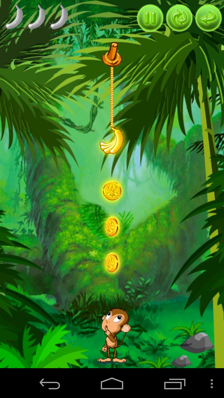 Это классическая игра в стиле веревки, предназначенную для случайных геймеров, есть несколько веревок и несколько бананов, которые вам нужно разрезать веревку таким образом, чтобы падающие бананы приземлялись прямо в его рот, если они не приземляются в его рот, вы потеряете игру.