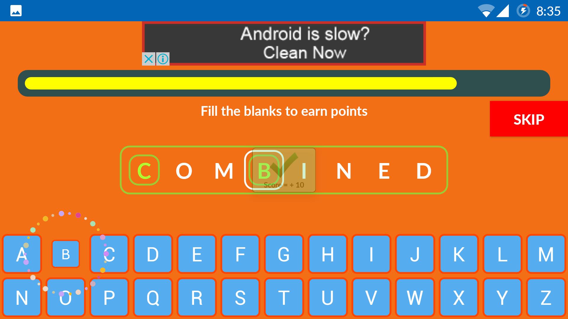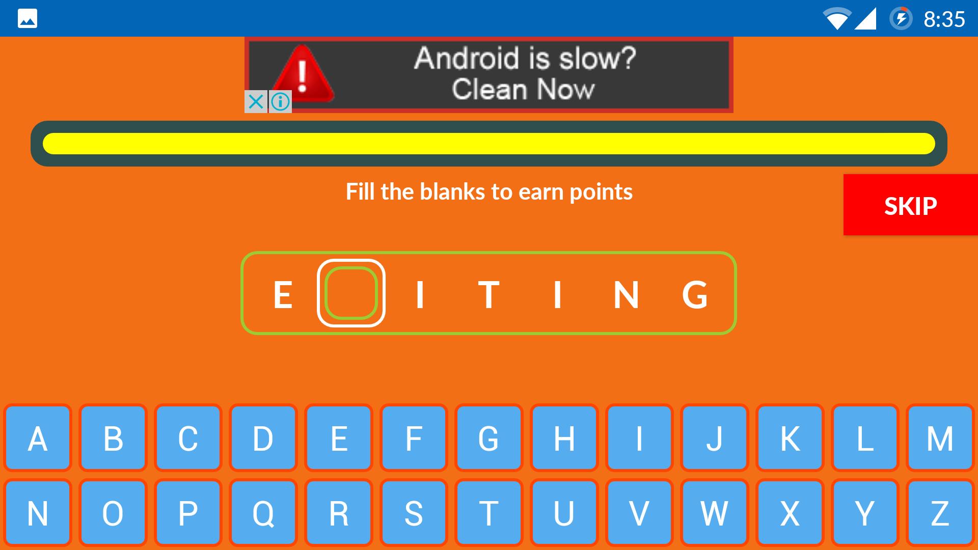 - You will be given a English word with some blanks in that, fill in the appropriate character to complete the word and earn points