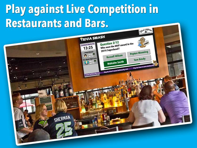 How much random knowledge does your brain hold? Play in single player mode to test yourself, or play against others in the ultimate challenge. And stay tuned as soon you will be able to play Trivia Smash at your favourite Restaurant and Bar.