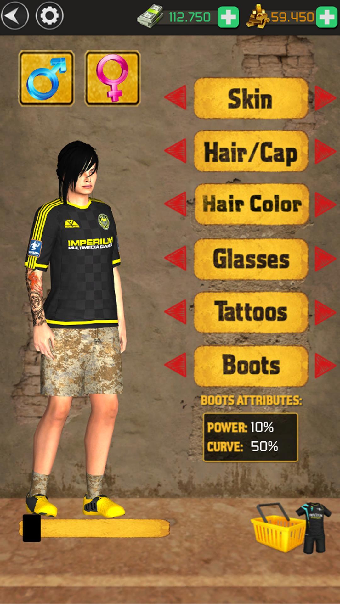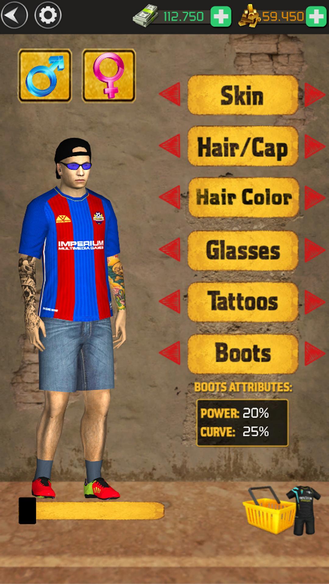Beat the goalkeeper! Collect new Balls, Clothes, Hairs and Glasses and create your dream player!