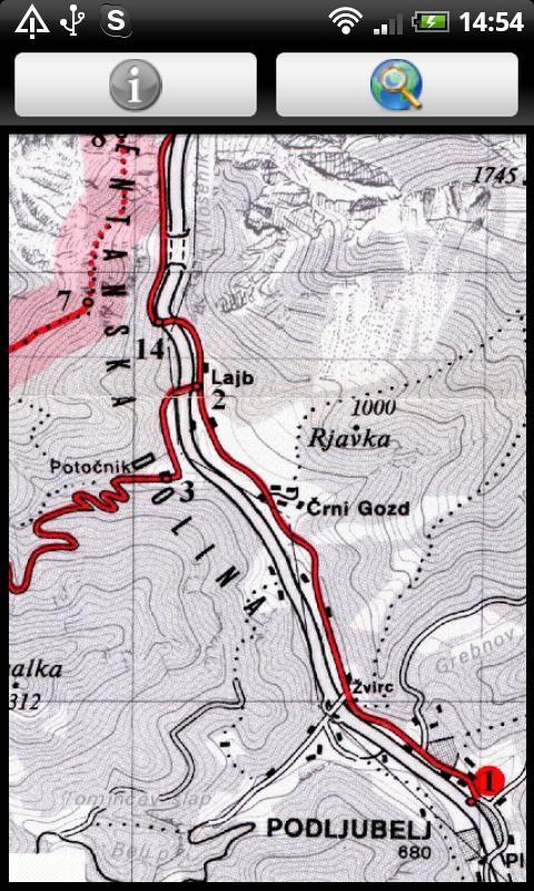 A famous Slovenian mountain bike guide "Strme kolesnice" (1997) from author Marko Paternu was used as a basis for this Android app (of course with authors approval).