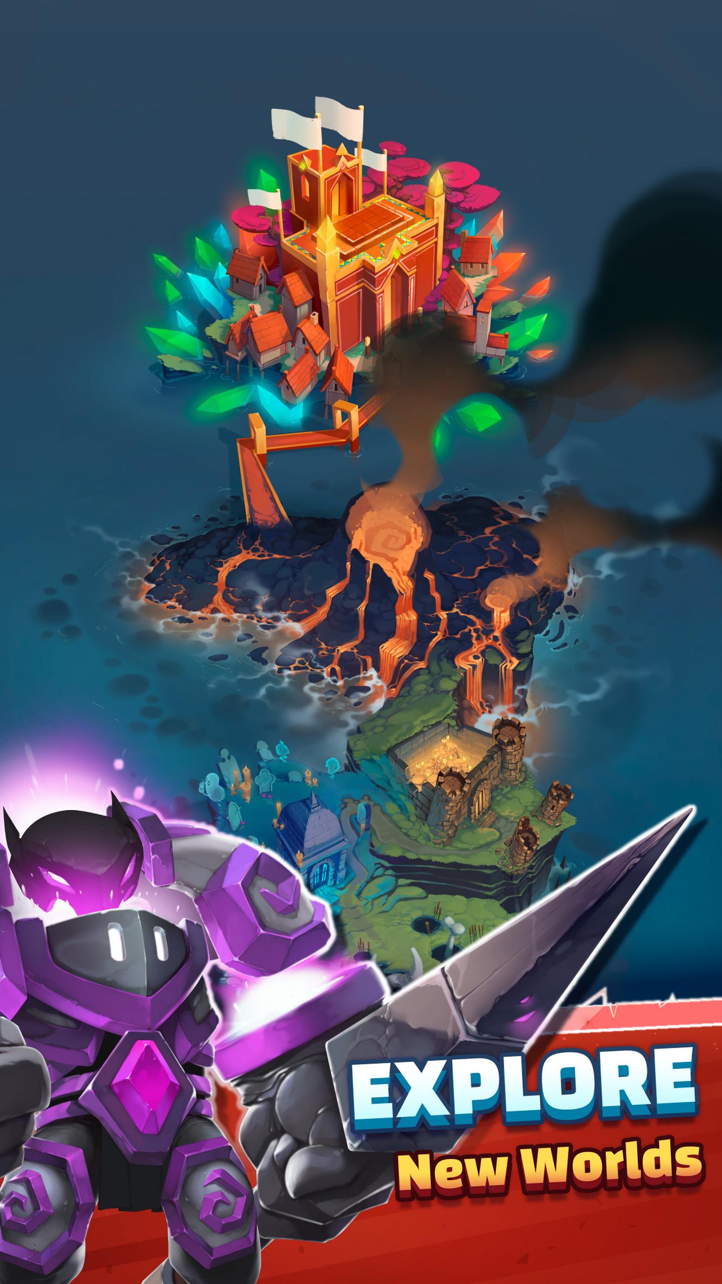 • Complete quests on the world map to train heroes and level up to achieve ultimate power