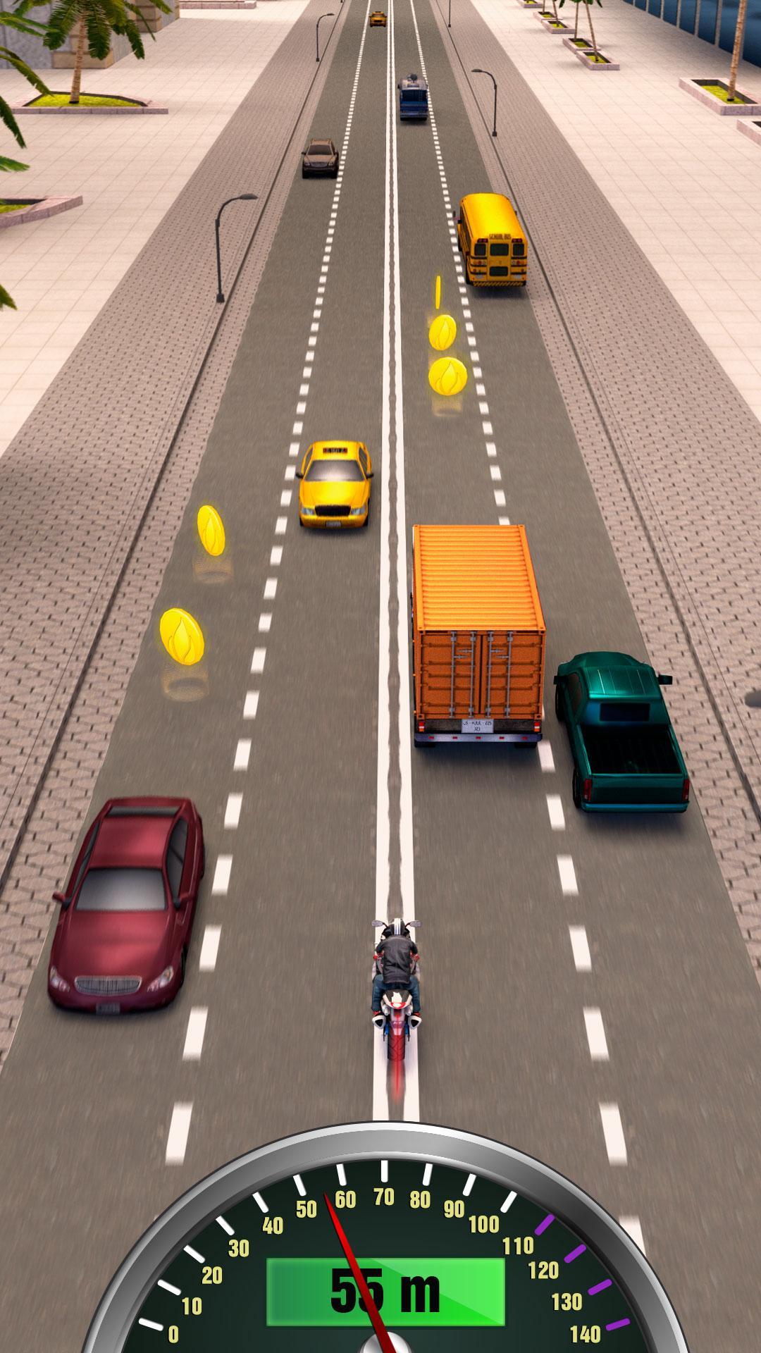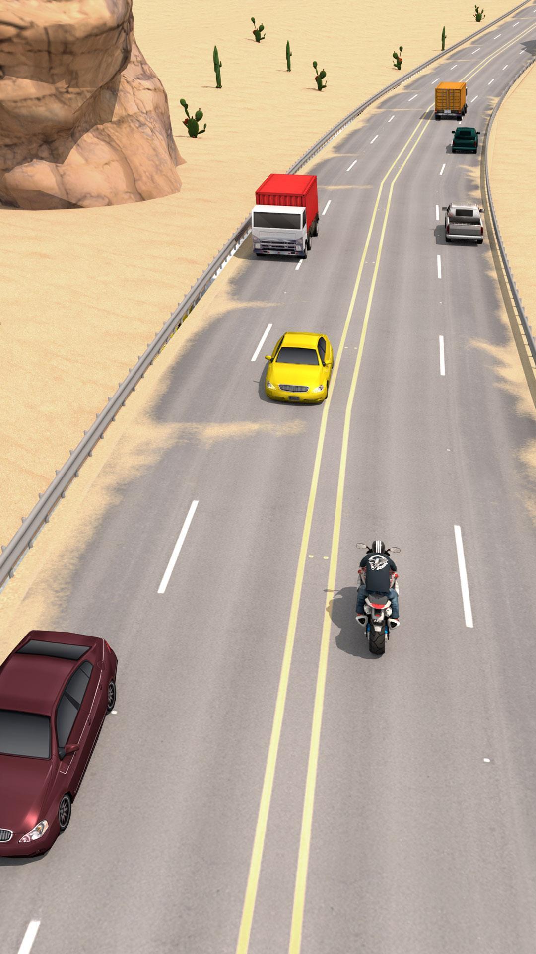 riding in highway traffic racer is what this game is all about. Enjoy driving your speed moto in the desert, highway and trough the asphalt traffic city racer, multiple bikes skins!