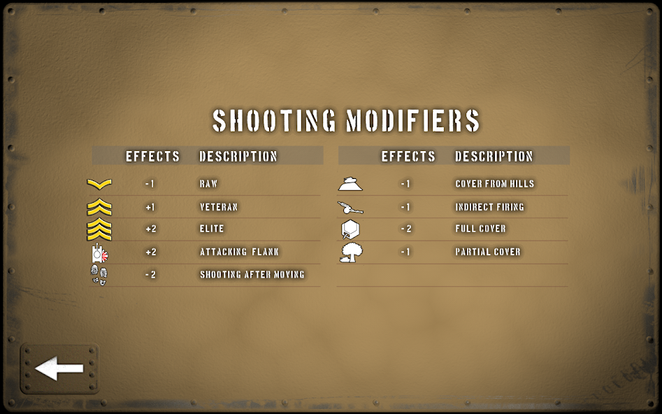 - Detailed combat analysis - see how the different factors such as terrain and armor affect the potential outcome.