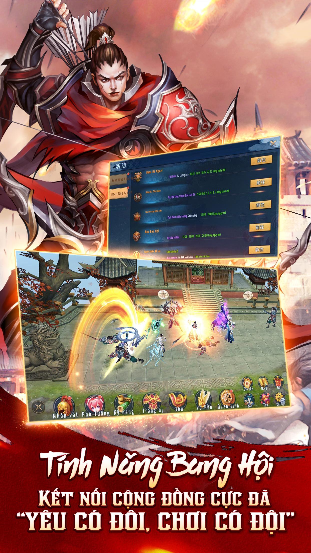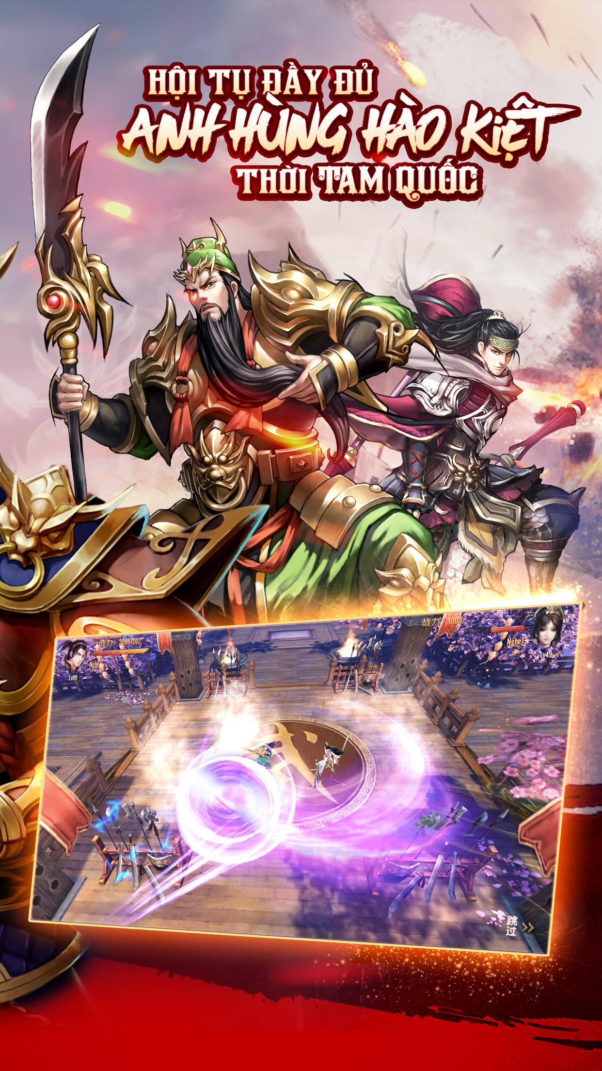- Accompany with more than 100 famous generals Tam Quoc such as Quan Vu, Lu Bo, Truong Phi, Tao Thao, Hoang Trung ...
