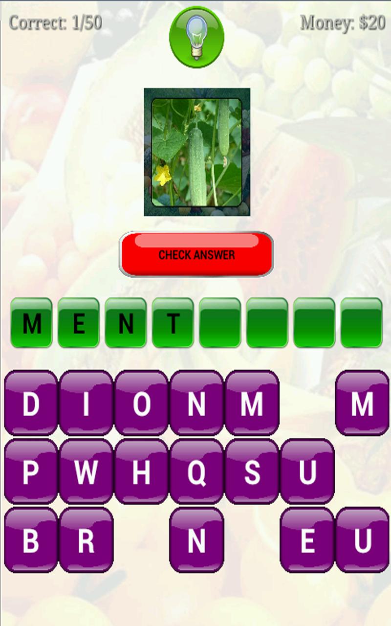 Guess the name of the fruit is a game guessing the name of the fruit based on the picture. This game is very easy to play, only by selecting every letter that will be strung into a fruit name. This game can add insight and knowledge about fruit names.