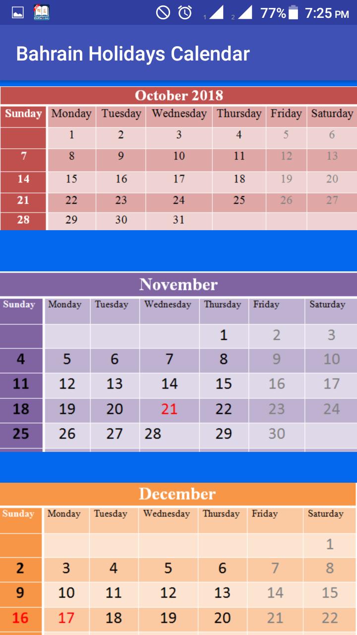 บาห์เรนปฏิทิน 2018 กับวันหยุด