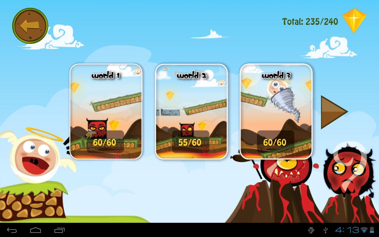 ใน HeavenHell เป้าหมายคือการโยนปีศาจแต่ละตัวออกจากหน้าจอด้วยความช่วยเหลือของเทวดา