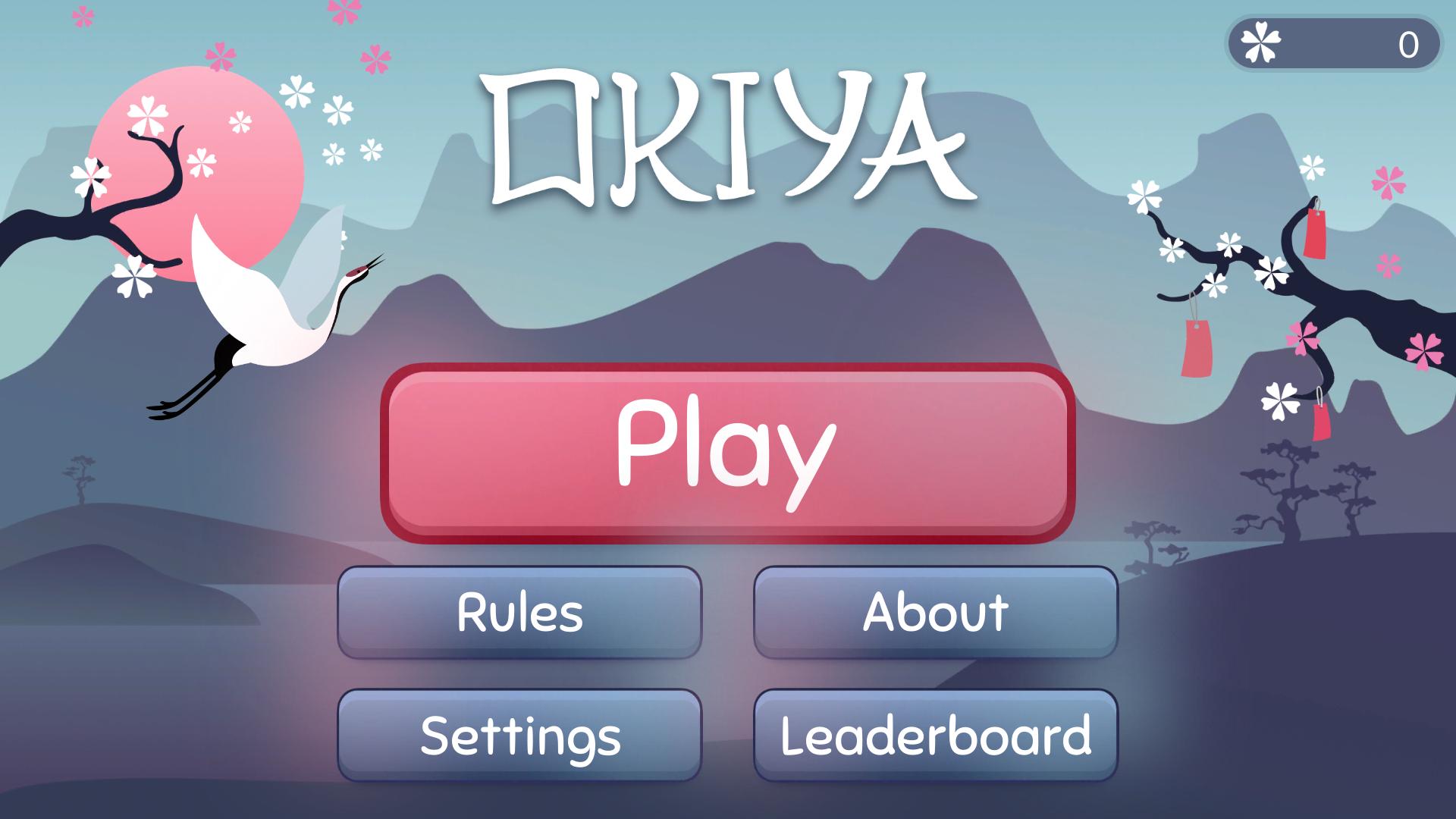 การเล่น Okiya นั้นง่าย เช่นเดียวกับใน tic tac toe ใน Okiya คุณควรรวบรวมชุดของการ์ด (4 ในแถว, 4 ในคอลัมน์หรือ 4 ในสี่เหลี่ยม) เช่นเดียวกับใน Mahjong คุณควรให้ความสนใจกับสัญลักษณ์บนการ์ด ทุกขั้นตอนของคุณกำหนดขั้นตอนต่อไปของคู่ต่อสู้ของคุณ คุณสามารถค้นหาข้อมูลรายละเอียดเพิ่มเติมได้ที่ส่วนเริ่มเกมด้านล่าง