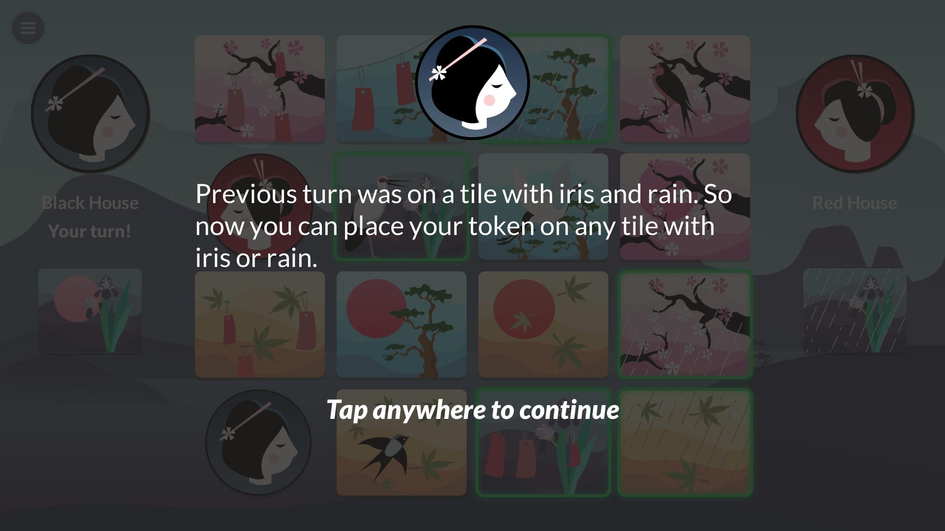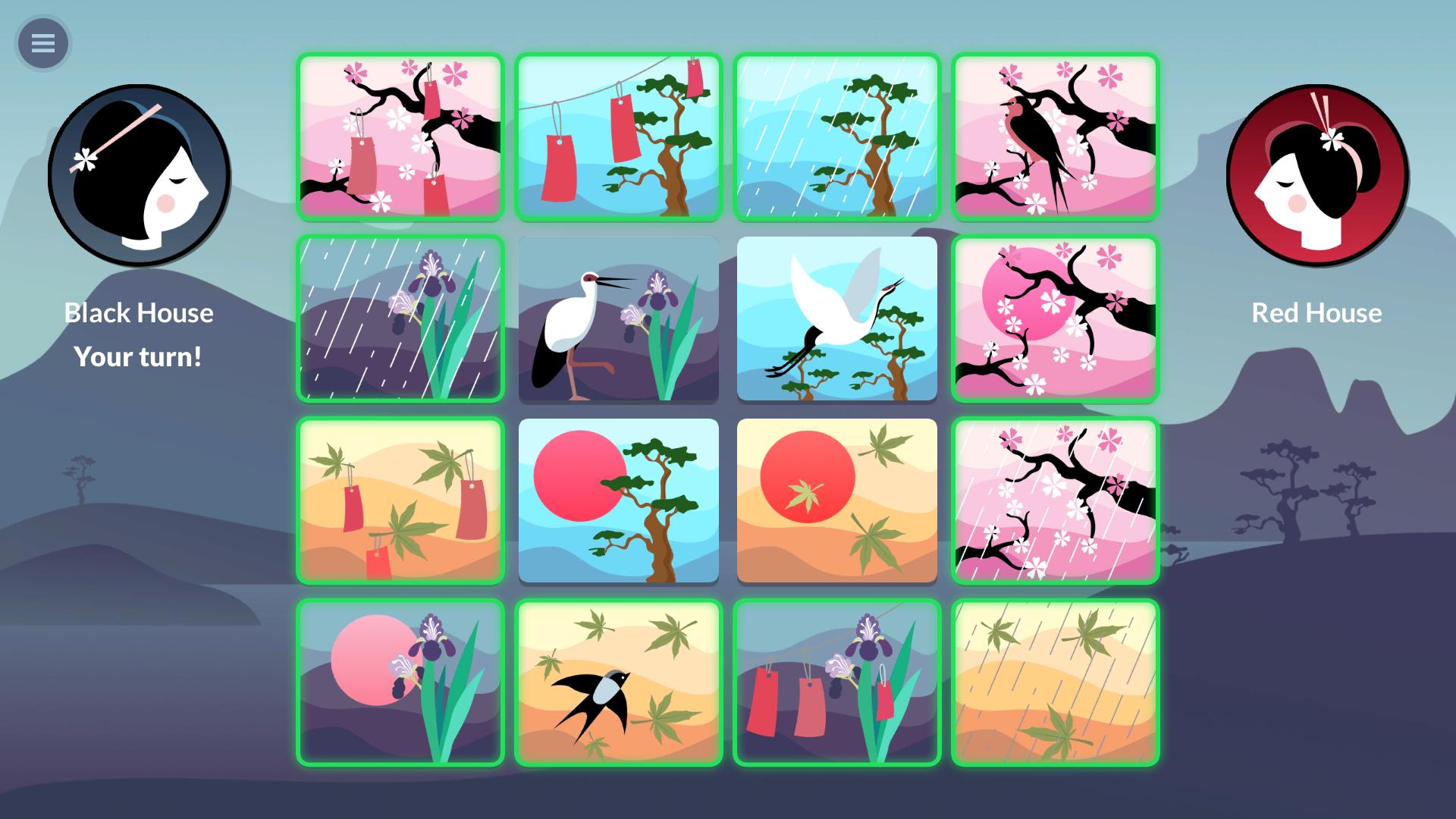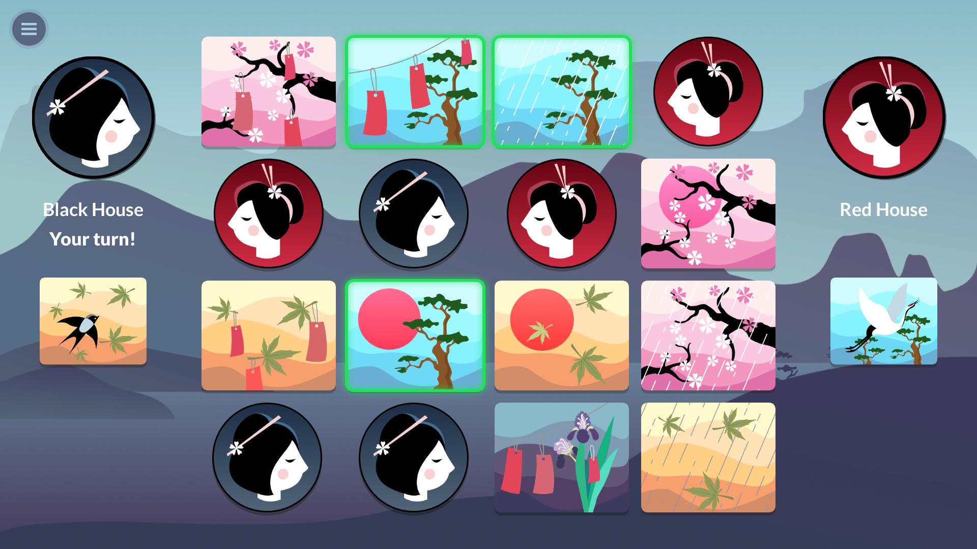 เทิร์นของผู้เล่นคนที่สองขึ้นอยู่กับเทิร์นก่อนหน้า ผู้เล่นคนที่สองสามารถลบการ์ดด้วยพืชพรรณเดียวกันหรือมีสัญลักษณ์บทกวีเดียวกัน