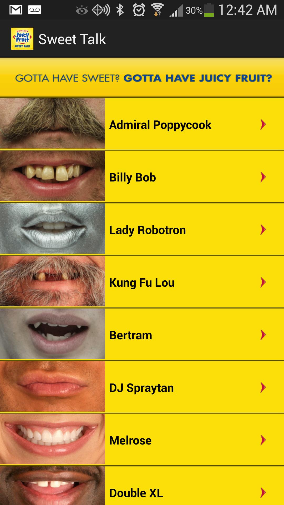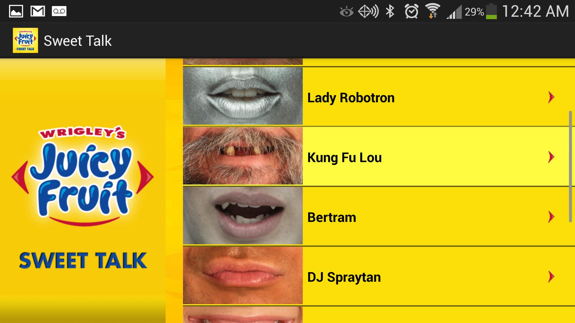 เตรียมพร้อมที่จะกระจายความหวานใหม่ด้วยแอพ Sweet Talk เพียงเลือกจากตัวละครตัวใหม่ของตัวละครที่มีปากรวมถึงตัวละครลับหนึ่งตัวถือ Android ของคุณไว้ใต้จมูกของคุณและปล่อยให้ความหวานบิน