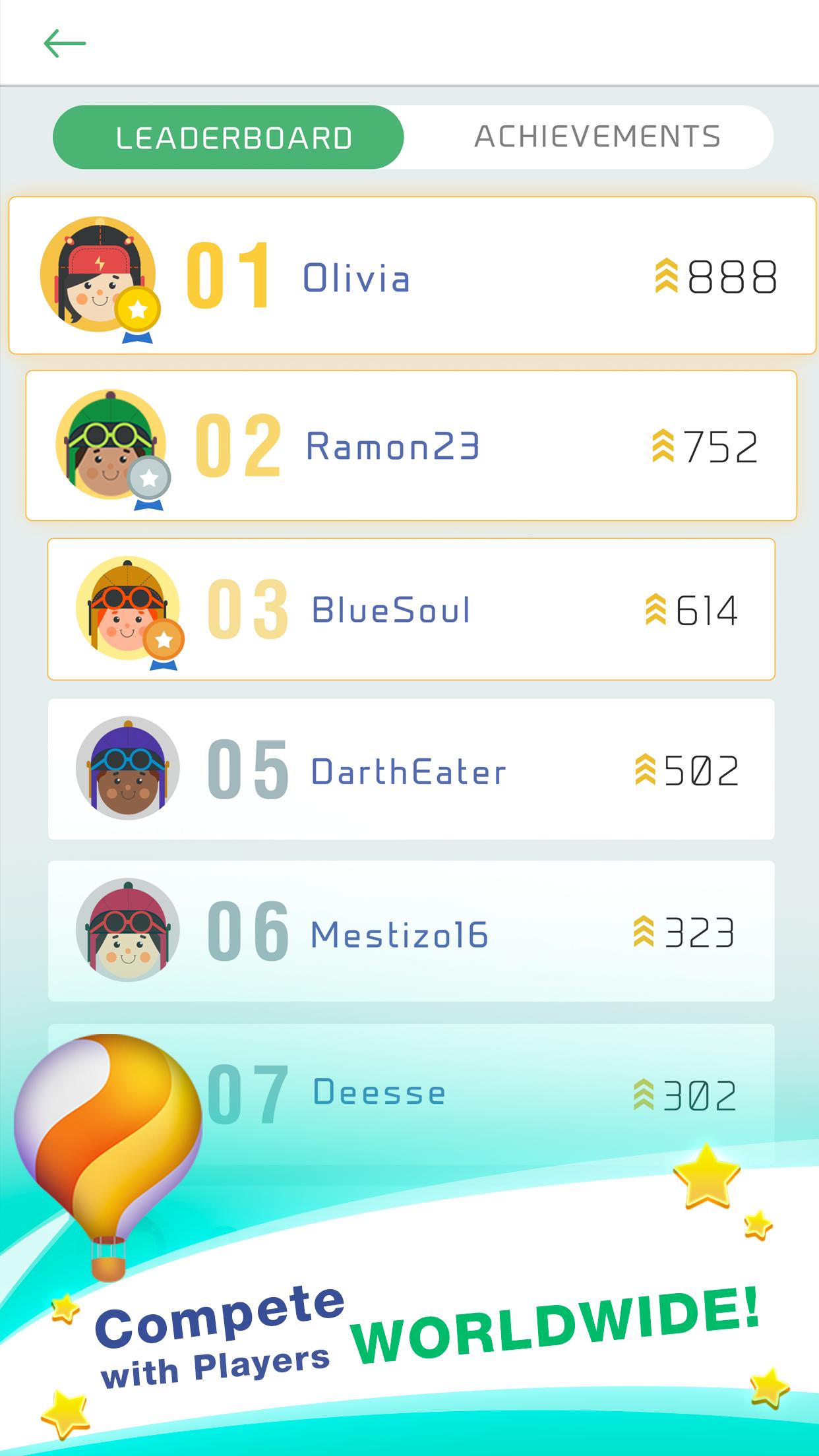ดูสถานที่ของคุณบนลีดเดอร์บอร์ดและพยายามครอบงำ Word Connect Puzzle! ตอนนี้เป็นโอกาสที่จะพิสูจน์ว่าคุณเป็นผู้เล่นที่คาดเดาคำที่ดีที่สุด!