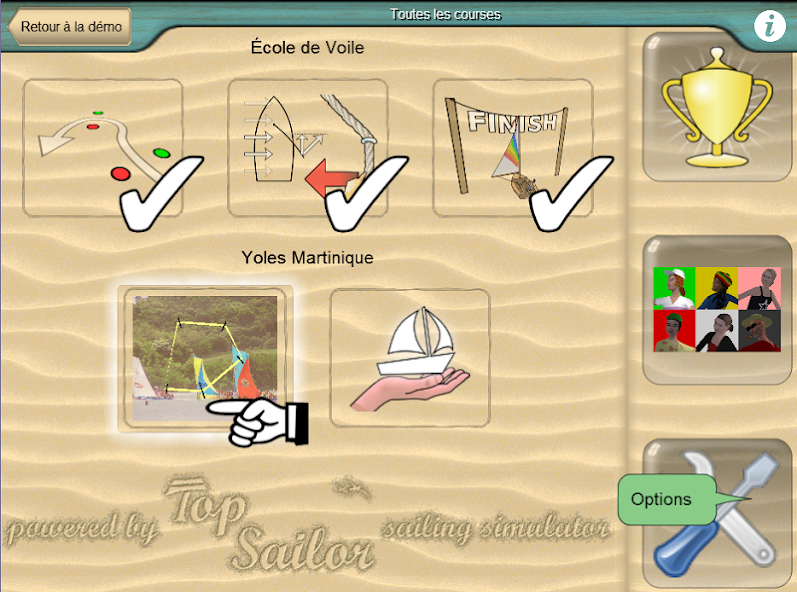 Yoles Martinique เป็นวิดีโอเกมที่จำลองการแข่งขัน Yole บนน่านน้ำของเกาะ Martinique เกมนี้มีพื้นฐานมาจากเครื่องจำลองการแล่นเรือใบของกะลาสีชั้นนำที่มีให้บริการเป็นเกมแยกต่างหาก