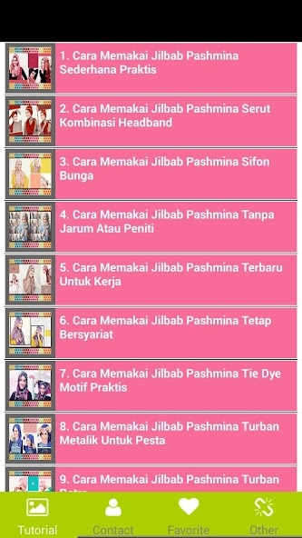 This tutorial is very easy and followed step by step so that if you are a beginner in using the hijab, it can be easy to learn hijab using this application. This application is equipped with images and also text steps using the right, fashionable and beautiful hijab.