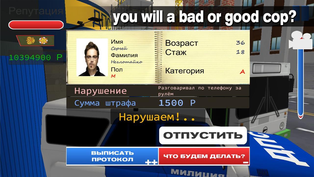 In this simulator, there are 2 ways: you can become an honest officer of traffic police in Moscow, or do not care about the reputation of the Russian police and care only about making money. In the first case you have to be fair and according to the law to carry out your work, to participate in all chases and strictly judge violators. In the second case you have to be tricky, feel free to take bribes and sought only benefit. You choose your path and once you decide what will be the Russian police in this simulator. Show how you are an employee of the Moscow traffic police!