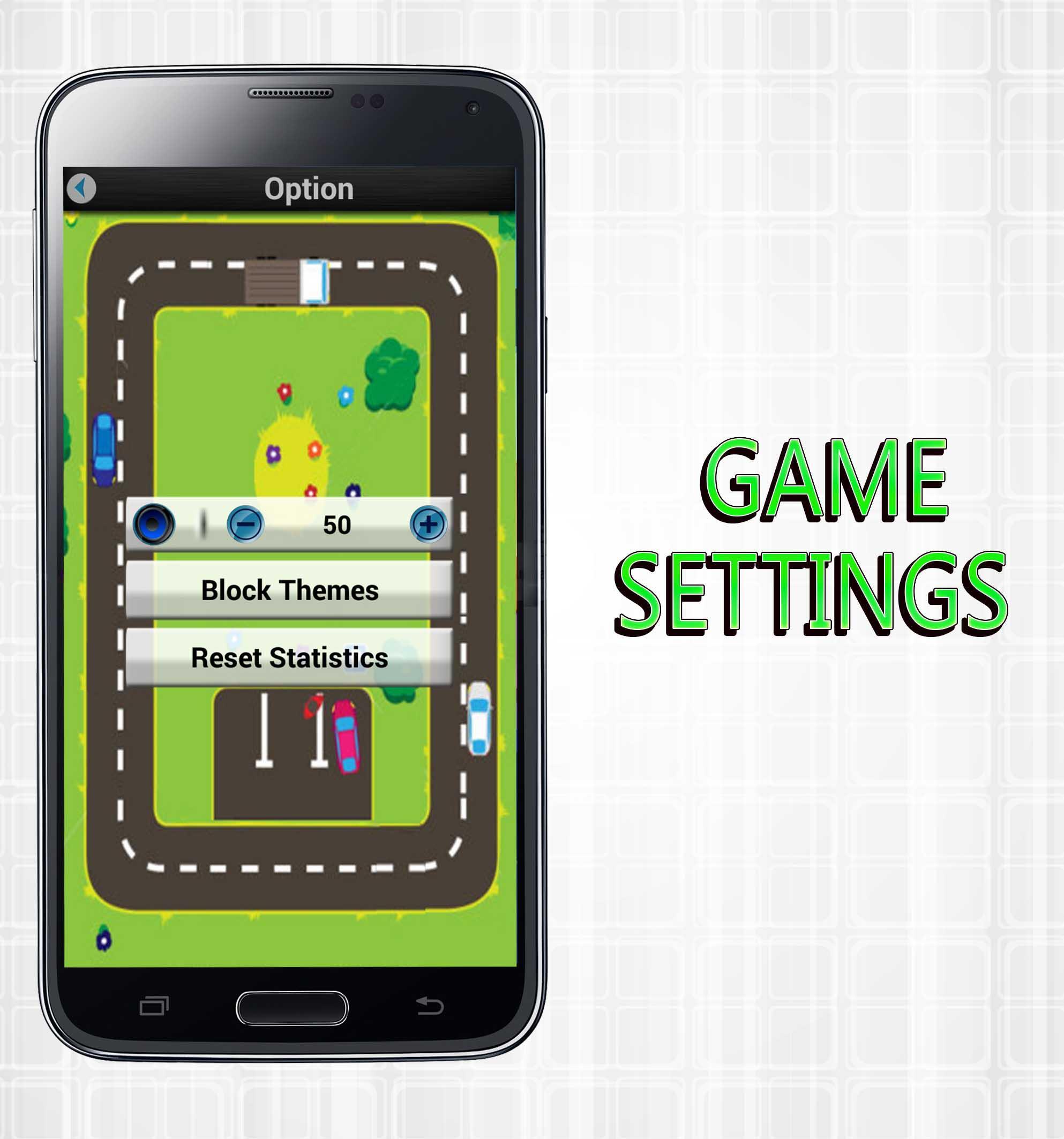 3- Settings to control the game through the settings to change and choose colors and type of the car that available in the game.
