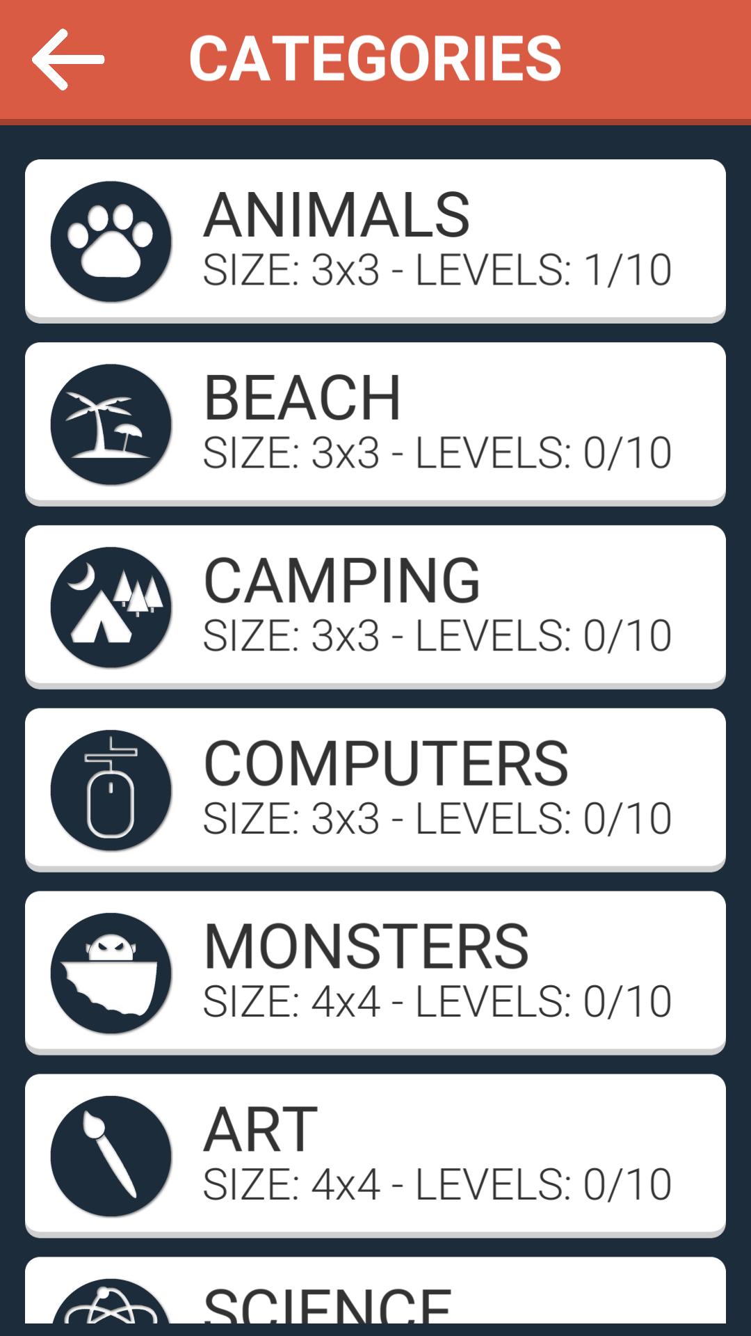 * Categories: 10 pre-built categories with ten levels each, for a total of 100 levels.
