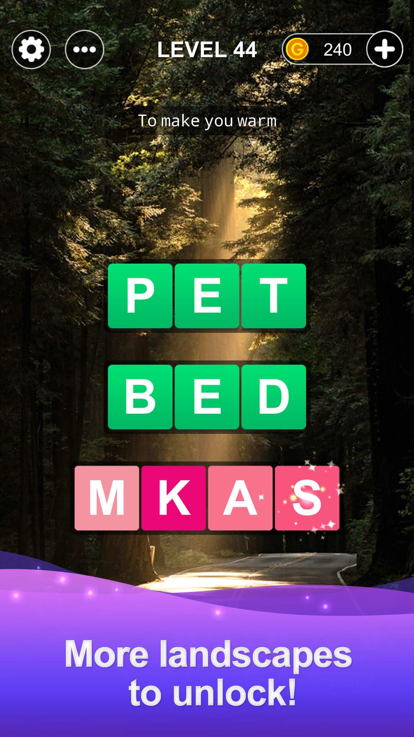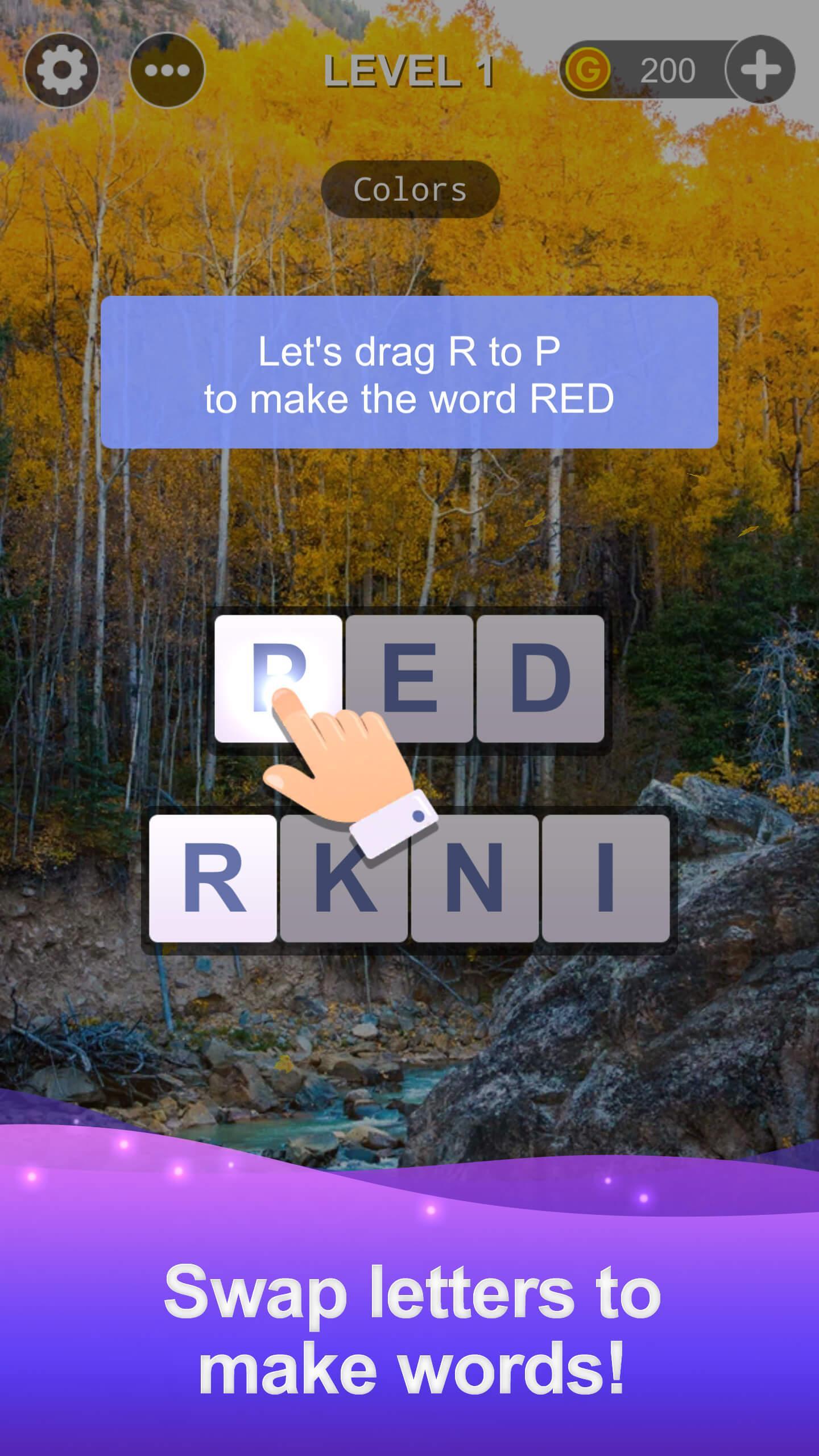 - Scrambled letter blocks to rearrange! Swipe and link!
