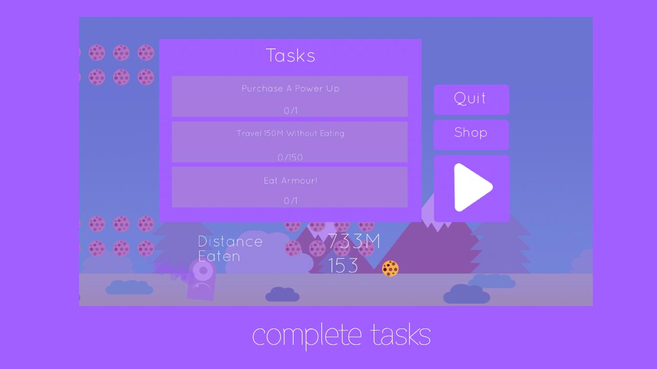 阿瓜坠落在地球上。阿瓜没有能力飞回他的家园。帮助阿瓜返回他的家园。但是,Agu是一个外星人,与人类不同,他对水果过敏! Agu只能通过吃饼干来获得自己的能量……nom nom!
