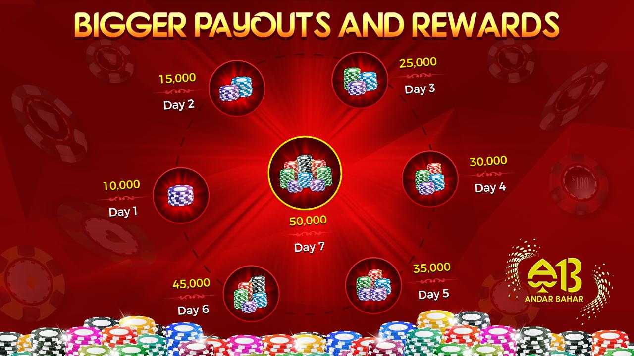 请注意:在Andar Bahar游戏中,您赢了或失去筹码。这些筹码没有真正的现金价值。游戏不涉及真正的赌博。它是完全免费的。如果您丢失了所有免费筹码,则可以购买更多筹码来玩。在社交游戏中的实践或成功并不意味着真实货币赌博的未来成功。
