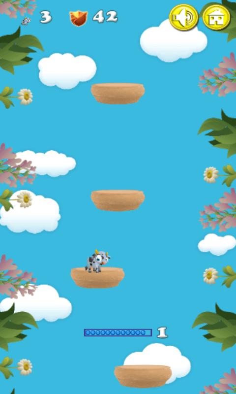 这头牛正在农场的草地上嚼。牛一直在地面上吃草。当草结束时,她需要到上层才能拥有更多。点击屏幕上,将她送到上层。她跳了起来,搬到上层。上层正在移动,因此请在敲击前关注该位置。否则牛会掉入坑里。